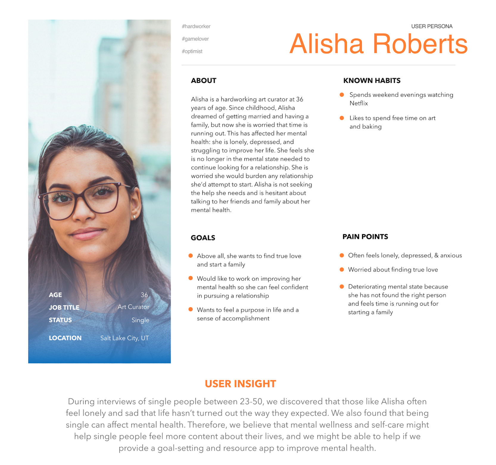 We feel that improving your mental health is important and valid for any reason. We chose to targeting single adults specifically because they feel frequent pressure to be in a relationship which can be frustrating and depressing. Our app works to help them improve their mental health and realize their self-worth with or without a partner.
